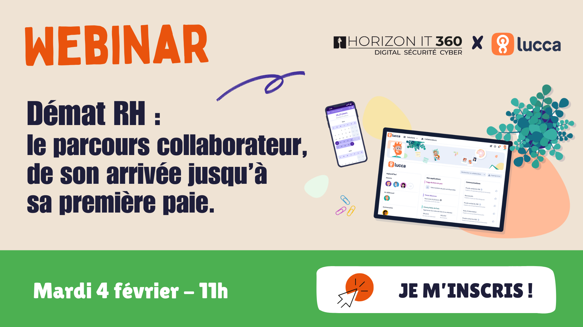 HORIZON IT 360, en partenariat avec Lucca, vous propose de participer à un Webinar exclusif pour découvrir comment la dématérialisation peut transformer vos processus RH, les rendre plus efficaces et sécurisés, et surtout vous permettre de gagner en productivité !