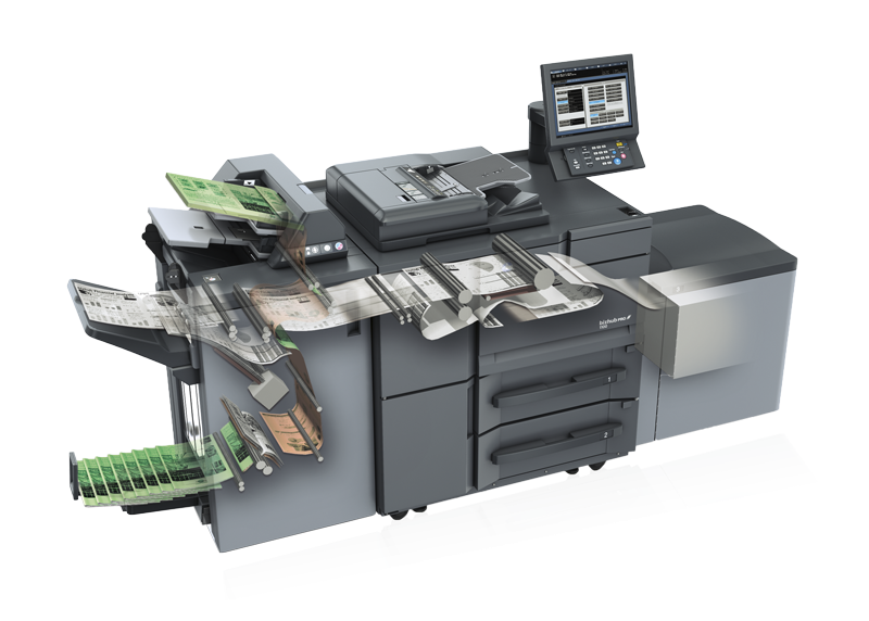 - Capacités de gestion des médias et flexibilité de finition (création de livrets, agrafage, reliure, etc.)